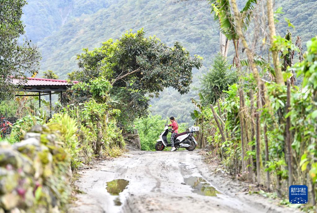 明珠措姆準備騎摩托車前往市場,銷售剛采摘的平菇(4月14日攝)。