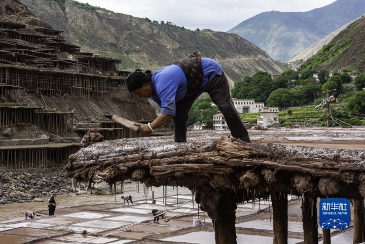 加達村村民在古鹽田里勞作(5月26日攝)。新華社記者 陳尚才 攝