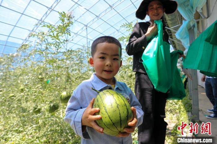 采摘節(jié)上,孩子們進(jìn)入高原大棚采摘西瓜?!≈鬓k方供圖