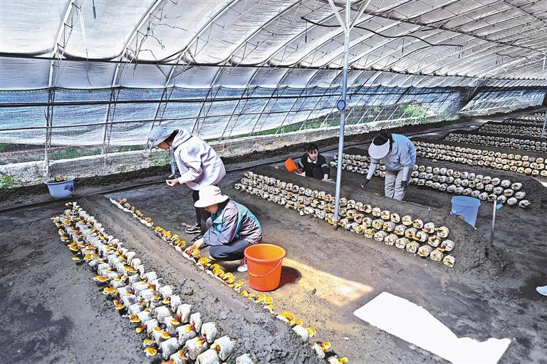 圖為達(dá)孜現(xiàn)代農(nóng)業(yè)產(chǎn)業(yè)園的技術(shù)人員在大棚內(nèi)查看靈芝長(zhǎng)勢(shì)。 記者 旦增蘭澤 攝