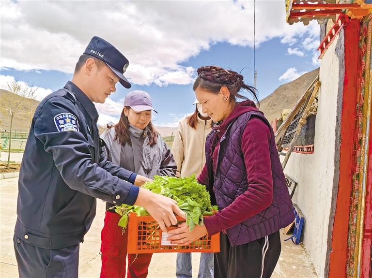一棵棵蔬菜是民警的愛心和關(guān)懷,真正暖進了村民心里。“群眾的難點痛點就是我們辦實事工作的著力點。哪里有需要,哪里就要有黨員當先鋒作表率的身影。”所長崗嘎加措表示。