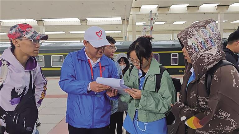 “到西部去、到基層去、到祖國和人民最需要的地方去。”7月24日,2023屆大學生西部計劃西藏專項志愿者陸續(xù)抵藏報到?,F(xiàn)場,共青團西藏自治區(qū)委員會組織了前幾屆志愿者在火車站接站?!拔沂菑暮幽线^來做志愿者的,在西藏已經(jīng)2年了,一直在自治區(qū)經(jīng)信廳上班。今天是過來接學弟學妹們的,幫助他們登記報到?!表n義凡說。中午11點左右,火車進站,志愿者們陸續(xù)前來報到。“這是我第一次來西藏,還是以志愿者的身份,我會好好工作,為西藏的發(fā)展作出自己的貢獻?!眮碜蕴旖虻奶锟苏f。
