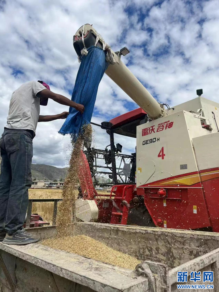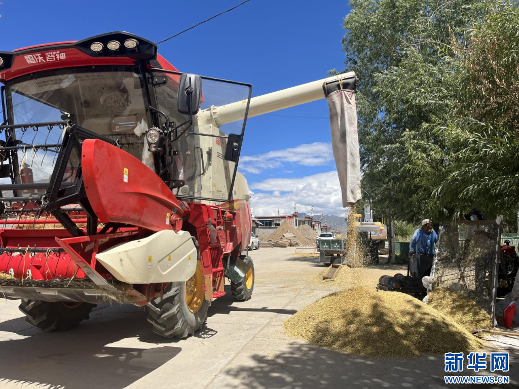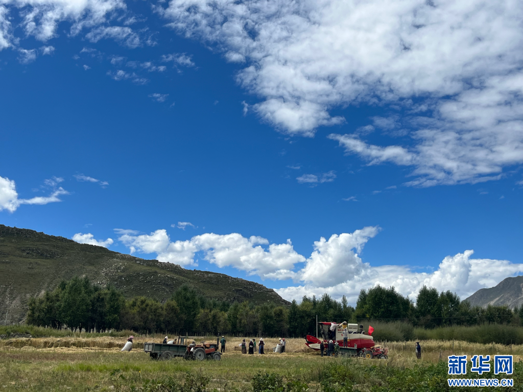 秋收時(shí)節(jié),西藏各地加快推進(jìn)秋收工作。在西藏拉薩市達(dá)孜區(qū),金色的田野里聯(lián)合收割機(jī)、拖拉機(jī)和電動(dòng)三輪車(chē)來(lái)回穿梭,收割、摘穗、秸稈粉碎、運(yùn)輸……一片繁忙景象。