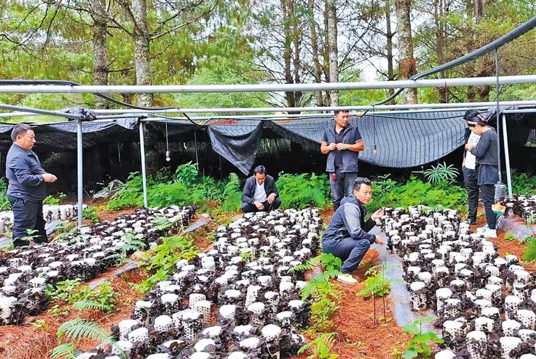 林芝市墨脫縣格當(dāng)鄉(xiāng)林下資源合作社技術(shù)員查看木耳長勢。