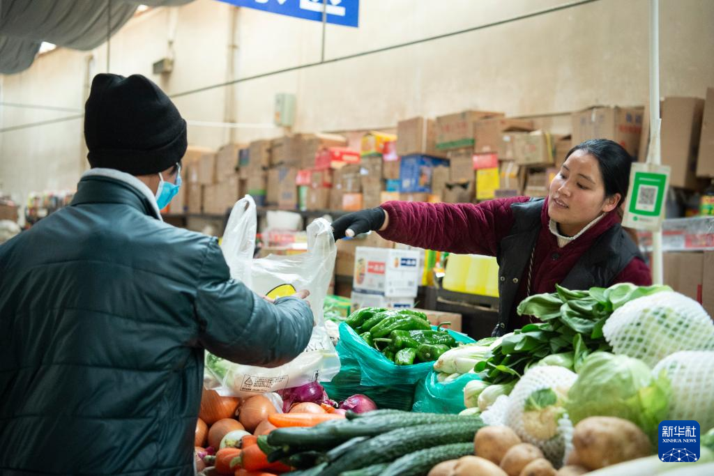 12月15日,羌域市場(chǎng)里,一名顧客在購(gòu)買蔬菜。新華社發(fā)(旦增努布攝)