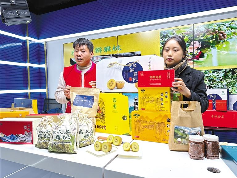 圖為邀請的“西藏師兄”和群措兩名本地主播向網(wǎng)友們推廣下察隅鎮(zhèn)的優(yōu)質(zhì)農(nóng)產(chǎn)品。 記者 謝筱純 王珊 攝