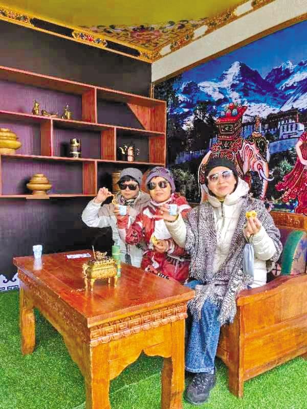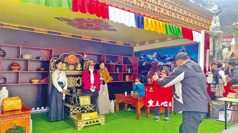 游客在“次仁的家藏式體驗館”區(qū)域拍照打卡集章。