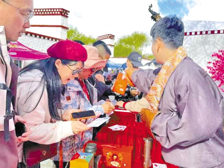 活動現(xiàn)場,工作人員通過組織游客參與拍照、打卡、集章等方式,依次通過“桃花圣地拍照打卡區(qū)”“次仁的家藏式體驗館”和“供銷小店展銷圣地”,集齊3枚印章后參與抽獎活動和美食品鑒。