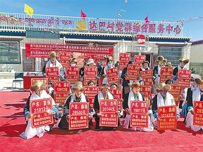 圖為康馬縣涅如麥鄉(xiāng)達(dá)巴村分紅儀式現(xiàn)場。