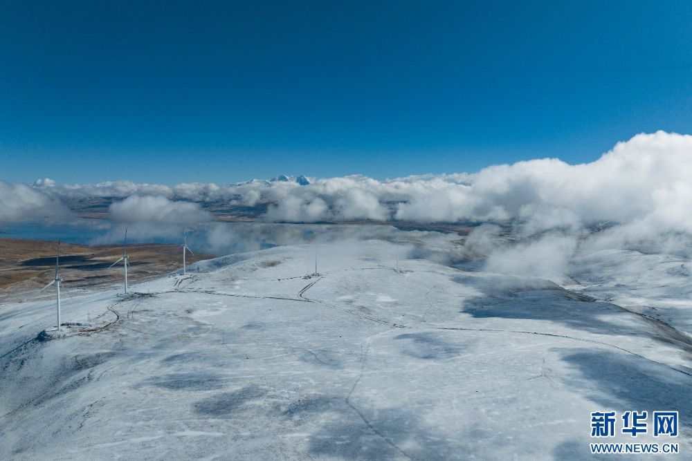 圖為西藏措美哲古風電項目一處風電機組(無人機照片)。新華網 旦增努布 攝