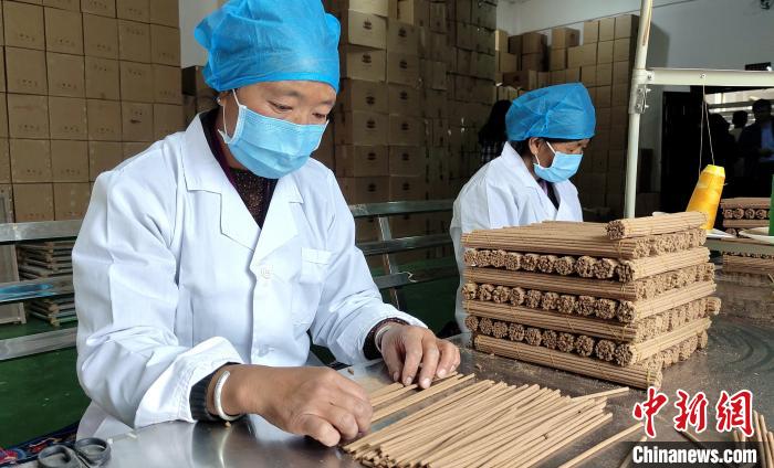 “我們農(nóng)閑時就會來這里制作藏香?!睅孜宦耦^工作的婦女不善言談,但她們數(shù)線香、捆藏香流程十分嫻熟,她們足不出村實現(xiàn)就業(yè)增收。