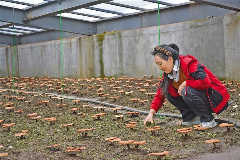 圖為珞瓦新村村民在大棚里檢查靈芝的長勢。記者 汪純 丹增平措 武沛濤 攝