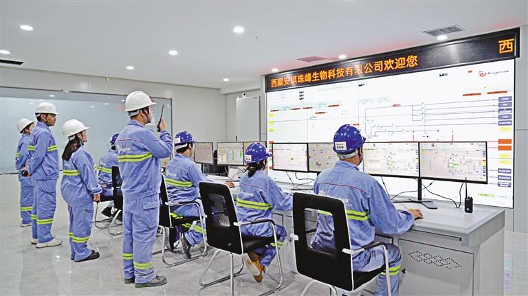 西藏安琪珠峰生物科技有限公司中控室內(nèi),工作人員在下達(dá)設(shè)備調(diào)試操作指令。 圖/文 記者 武沛濤 通訊員 陳映午