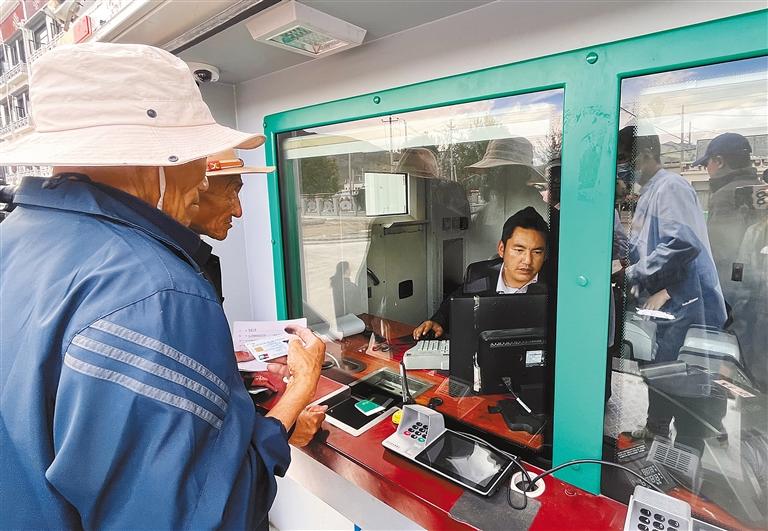工作人員為老人辦理業(yè)務(wù)。記者 旦增藍(lán)澤 攝
