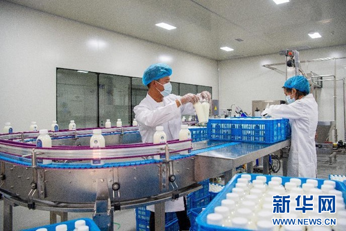 8月21日拍攝的嘎確牧場(chǎng)奶制品流水線。新華網(wǎng) 旦增努布攝