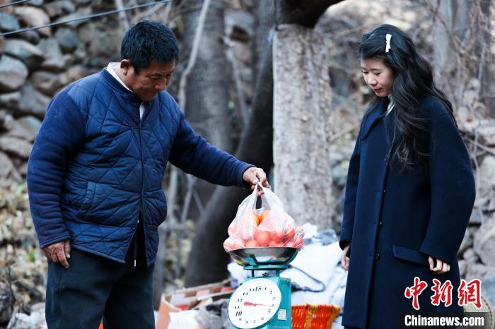 圖為游客在果園內(nèi)購(gòu)買康巴蜜橘。中新社記者 薛蒂 攝