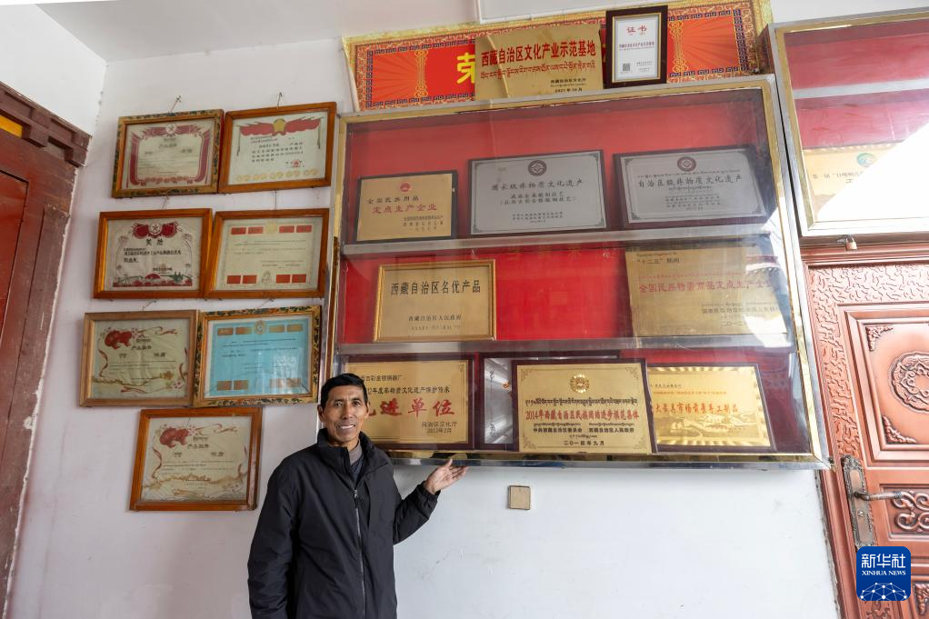 廠長拉巴瓊達(dá)是這項(xiàng)非物質(zhì)文化遺產(chǎn)的代表性傳承人。如今,他帶領(lǐng)18個(gè)匠人和學(xué)徒把廠子做得紅紅火火,2024年平均每個(gè)工人每月收入達(dá)到7000多元,靠非遺手藝實(shí)現(xiàn)了共同富裕。