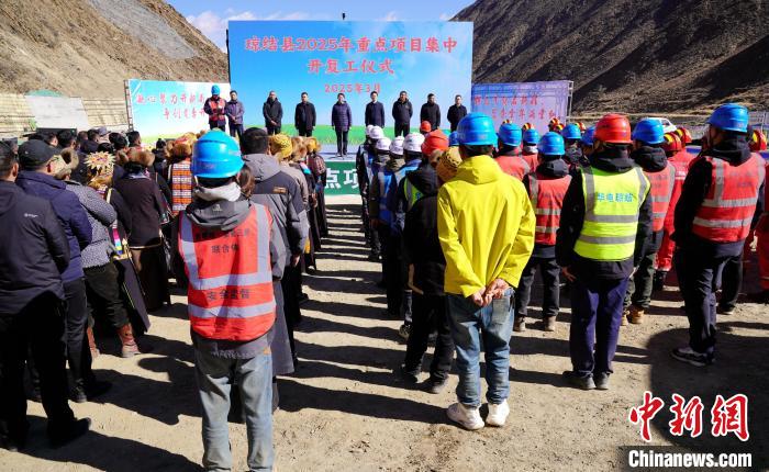 圖為西藏山南市瓊結(jié)縣2025年重點(diǎn)項(xiàng)目集中開(kāi)復(fù)工儀式現(xiàn)場(chǎng)。曲杰 攝