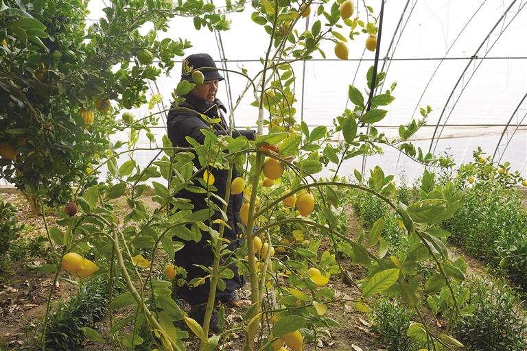 科研員觀察實(shí)驗(yàn)香櫞。