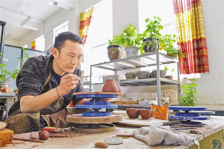 圖為察雅縣香堆鎮(zhèn)明亮民族手工藝品制造有限公司的手工藝人在制作陶瓷。記者 丹增群培 攝