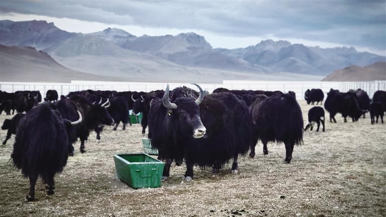 圖為改則縣野血牦牛選育場冬季補(bǔ)飼場景。圖由改則縣野血牦牛選育場提供