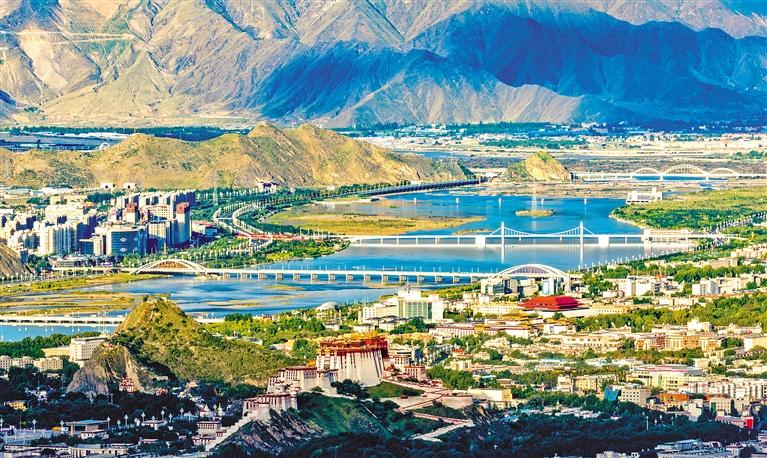 1965年8月25日,橫跨拉薩河的第一座大橋——拉薩大橋正式落成通車,結(jié)束了當(dāng)?shù)厝罕娍颗Fしざ珊拥臍v史。如今僅在拉薩市區(qū),就有柳東大橋、青藏鐵路拉薩河特大橋、和美橋、柳梧大橋、連心橋、迎親橋、拉薩大橋、藏?zé)岽髽?、納金大橋等眾多大橋跨越拉薩河。拉薩河上的橋梁方便了人們的生活,扮靚了城市的風(fēng)景,也是西藏經(jīng)濟社會發(fā)展、交通基礎(chǔ)設(shè)施建設(shè)日新月異的見證。