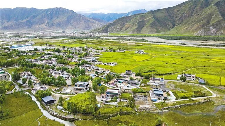 圖為墨竹工卡縣塔巴村全新面貌(無人機照片)。通訊員 洛克 攝