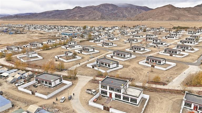 定日縣克瑪鄉(xiāng)林下村,51戶村民陸續(xù)搬進藏式新房,紅瓦白墻映著國旗,成為雪域高原上最溫暖的風(fēng)景。