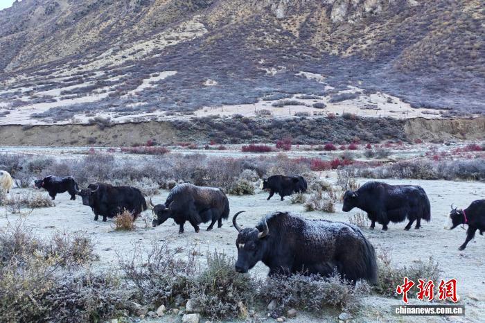 圖為10月16日,西藏那曲市嘉黎縣農(nóng)牧民飼養(yǎng)的牦牛群,牦牛因與農(nóng)牧民生產(chǎn)生活緊密相關(guān),因此被譽(yù)為“高原之舟”“全能家畜”。江飛波 攝