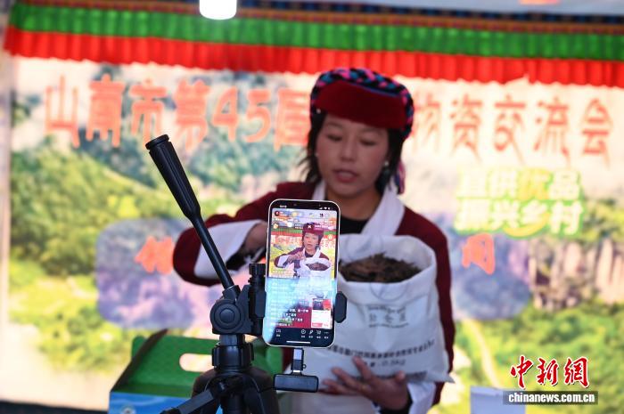 圖為商戶達(dá)娃曲珍正在線上售賣產(chǎn)品。拉巴卓瑪攝