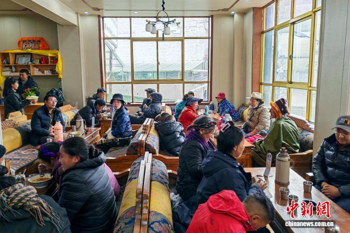 1月2日,拉薩市墨竹工卡縣德仲溫泉附近的茶館里人聲鼎沸。中新社記者 江飛波 攝
