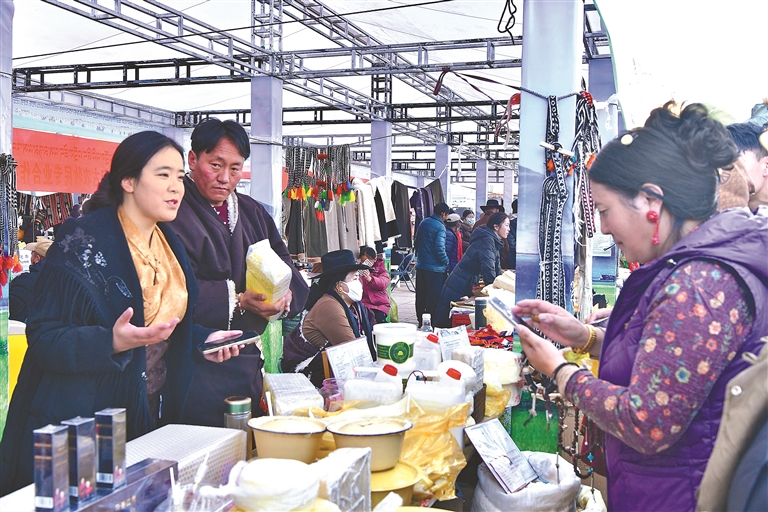 近日,“雪域暖冬 禮遇北城”2025年那曲市中部四縣(區(qū))區(qū)域協(xié)作發(fā)展農(nóng)畜產(chǎn)品展銷會,在拉薩市城關(guān)區(qū)北城新天地廣場舉行。本次展銷會來自那曲市中部四縣(區(qū))的多家企業(yè)和合作社參展,展銷產(chǎn)品包括家畜產(chǎn)品,優(yōu)質(zhì)牛羊肉、新鮮乳制品以及獨特的地方手工藝品,吸引了眾多市民前來選購。