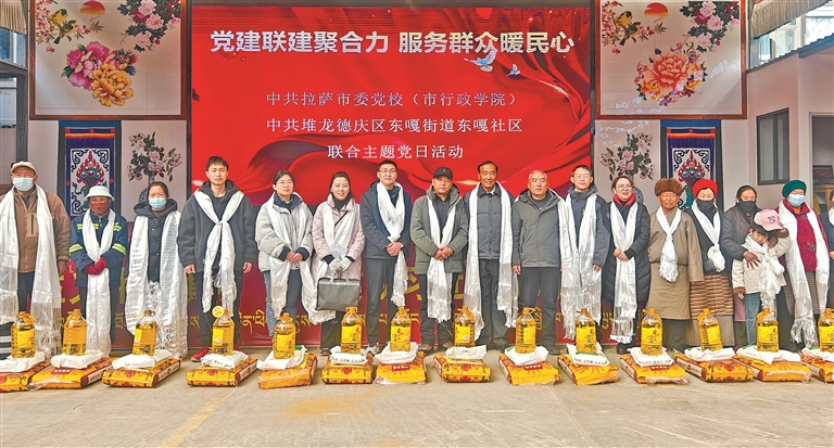 黨校黨員為30戶困難居民發(fā)放慰問(wèn)品。記者 格桑倫珠 攝
