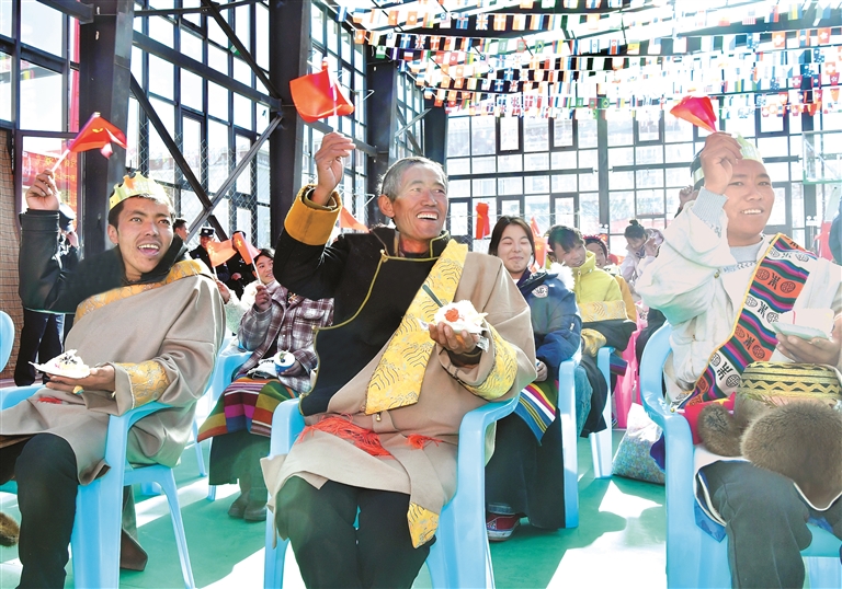 這一幕,發(fā)生在1月6日日喀則市定結(jié)縣郭加鄉(xiāng)政府禮堂里舉行的“感恩奮進新居樂業(yè),暖冬六送情滿家園”活動現(xiàn)場。