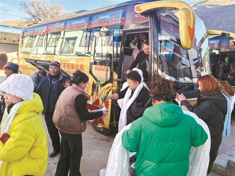 拉玉鄉(xiāng)強吉村來自全國各地的“冬游西藏”百人團游客。