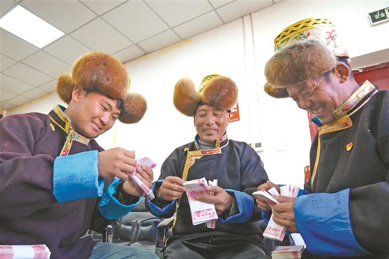 不止青稞酒?!把┛店笈!薄跋滤w麥”成了金字招牌。堆巴村集體經(jīng)濟收入超百萬元,村支書扎西頓珠算起賬:“20個村都過了15萬元,鄉(xiāng)親們的分紅越來越多?!?/p>
