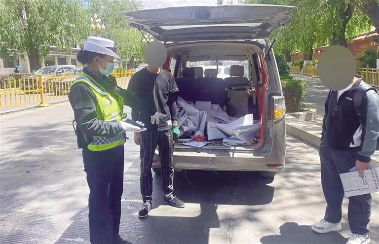 查獲處罰現(xiàn)場。 圖由拉薩市公安局交警支隊(duì)提供