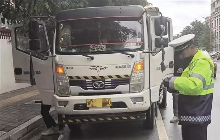“師傅您好,現(xiàn)在屬于貨車禁止入城時段,請您繞行。”行動中,城南大隊(duì)以進(jìn)出城路段為重點(diǎn),安排警力對重點(diǎn)路段開展巡邏管控、定點(diǎn)提示,以面對面提示、勸導(dǎo)的方式,向駕駛員宣講貨車禁止入城時段以及違規(guī)入城涉及的法規(guī)條例,主動詢問駕駛員目的地,告知其繞道行駛路線。