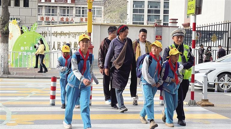 此外,拉薩交警還利用每日“護學崗”時間,主動引導學生正確過馬路、認識交通信號燈,提醒學生不在馬路上嬉戲、追逐打鬧,不乘坐三輪摩托車等不規(guī)范車輛,并向接送學生的家長講解接送孩子途中應注意的安全事項,告誡學生家長以身作則,杜絕橫穿馬路、闖紅燈等交通陋習,共同營造安全、暢通、文明和諧的道路交通環(huán)境。“我們鼓勵孩子們將學到的交通安全知識帶回家,充分發(fā)揮‘小手拉大手’作用,向家人宣傳道路交通安全知識,強化家長、學生安全意識和自我保護意識?!瘪R定雄說。