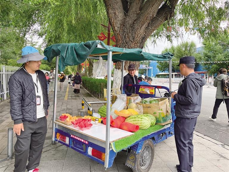 “我們從每日早上10點(diǎn)至晚上11點(diǎn),對布達(dá)拉宮南門、宗角祿康東門采取值班執(zhí)勤等方式進(jìn)行不間斷盯守,同時(shí)加強(qiáng)城管執(zhí)法大隊(duì)日常路段巡查力度,進(jìn)一步鞏固整治工作成效,提高監(jiān)管效率,形成規(guī)范化和長效化的城市管理機(jī)制,共創(chuàng)文明有序的市容環(huán)境?!辈歼_(dá)拉宮周邊亂象專項(xiàng)整治工作專班成員常春告訴記者。