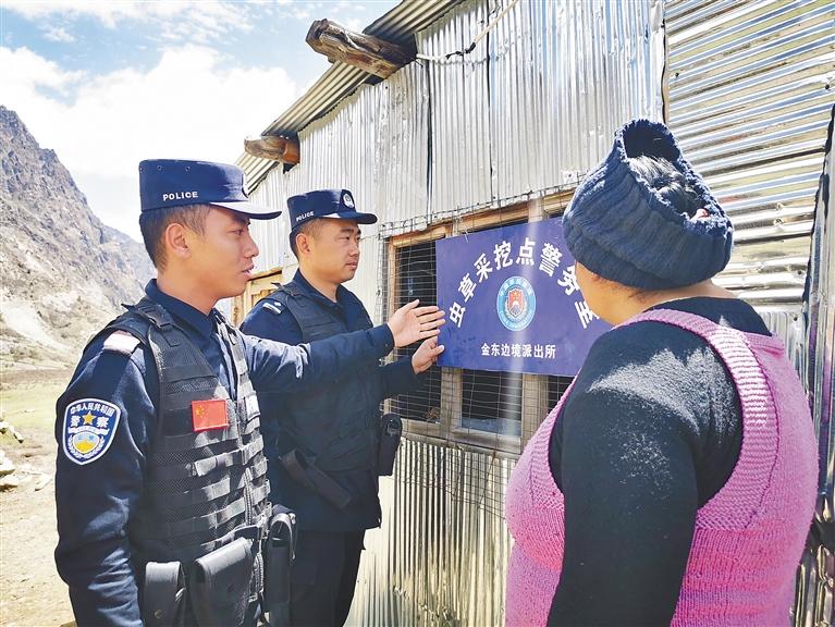 金東邊境派出所民警為群眾介紹蟲草采挖點(diǎn)警務(wù)室職能。 (本文配圖由通訊員 張力 記者 謝筱純 王珊 攝)