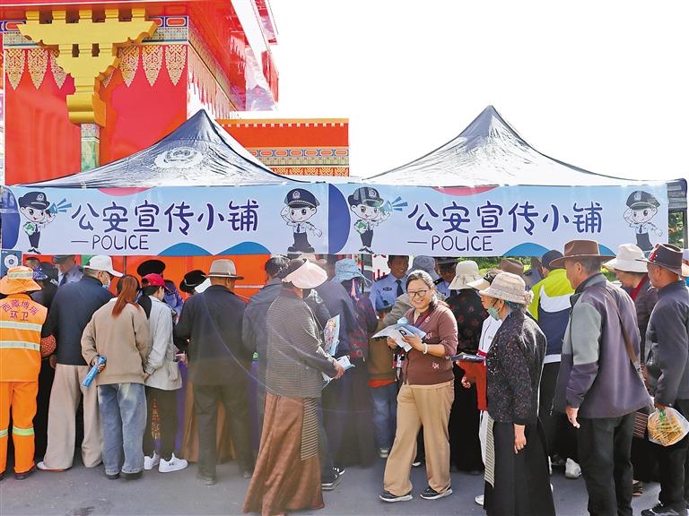 山南市公安局“公安宣傳小鋪”為過往群眾開展安全防范知識宣傳。