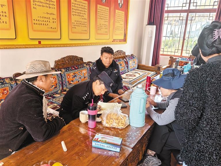 圖為昌都市察雅縣公安局?jǐn)U達(dá)派出所民警在轄區(qū)開展“一標(biāo)三實(shí)”基礎(chǔ)信息采集工作。記者 卓嘎 攝