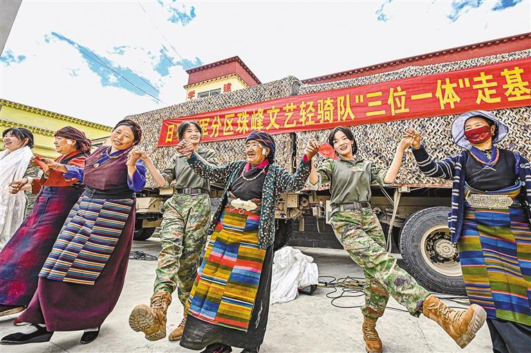 近日,西藏日喀則軍分區(qū)珠峰文藝輕騎隊赴日喀則市定結(jié)縣日屋鎮(zhèn)慰問演出,為駐地官兵、村民帶來一場精彩紛呈的藝術(shù)大餐和視覺盛宴。