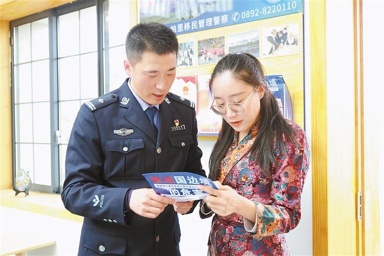 圖為民警正在向駐村工作隊隊員宣講邊境政策。記者 李梅英 攝