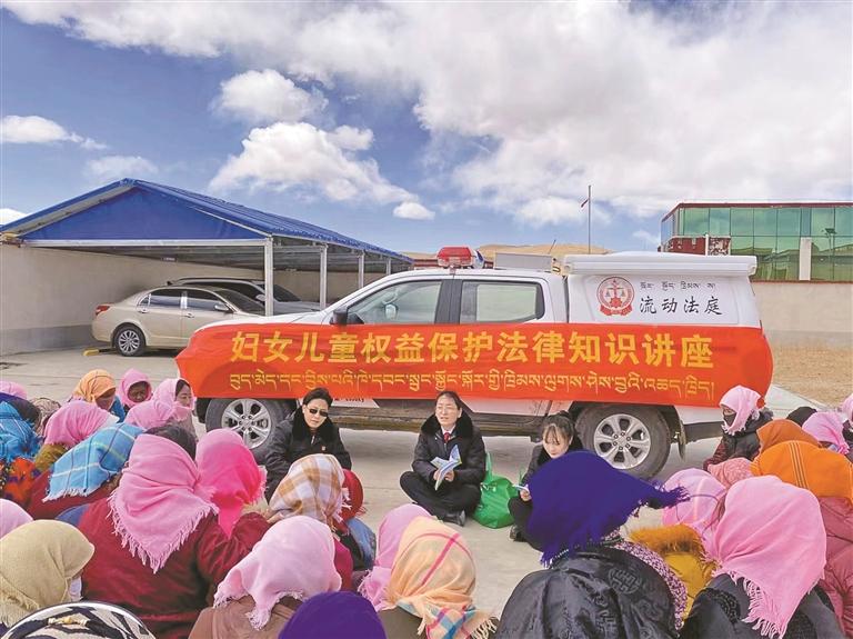 班戈縣人民法院青龍東嘎人民法庭依托流動法庭開展婦女權益保障法專題法治講座。文/圖 記者 趙文慧 通訊員 巴色 次仁卓瑪
