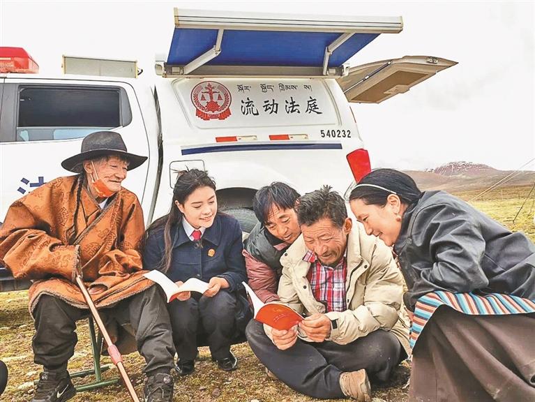 “牧民群眾到哪里,司法服務就跟進到哪里?!睆膸づ竦桨簿臃浚乔r(nóng)牧民的生活發(fā)生了翻天覆地的變化,司法服務也隨之提質(zhì)升級。索縣人民法院、申扎縣人民法院以“索秀卓姆在行動”和“馬上就辦”的服務理念為引領,依托“法官定點掛包”機制,通過“靶向發(fā)力辦實事”工作法,讓流動法庭成為牧民群眾與司法之間的“直通熱線”。