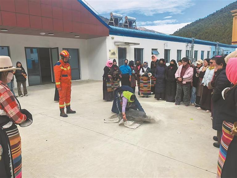亞東縣消防救援大隊(duì)消防員深入轄區(qū)搬遷點(diǎn)開展消防安全宣傳培訓(xùn)活動(dòng)。龍珍 攝