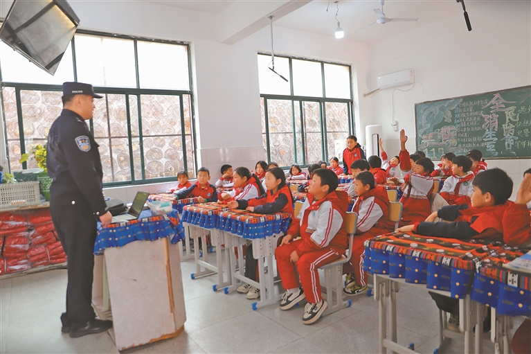林芝邊境管理支隊格當(dāng)邊境派出所民警為格當(dāng)鄉(xiāng)小學(xué)學(xué)生上普法課。記者 彭琦 通訊員 陳熙涵 攝影報道