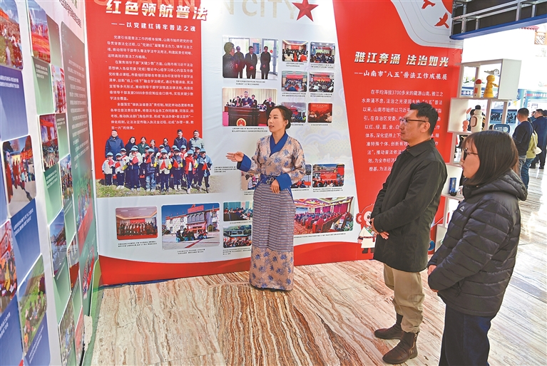在全區(qū)“憲法宣傳周”活動暨“八五”普法成果展示活動上,市民游客觀看普法展覽。記者 唐斌 王敏 攝影報道